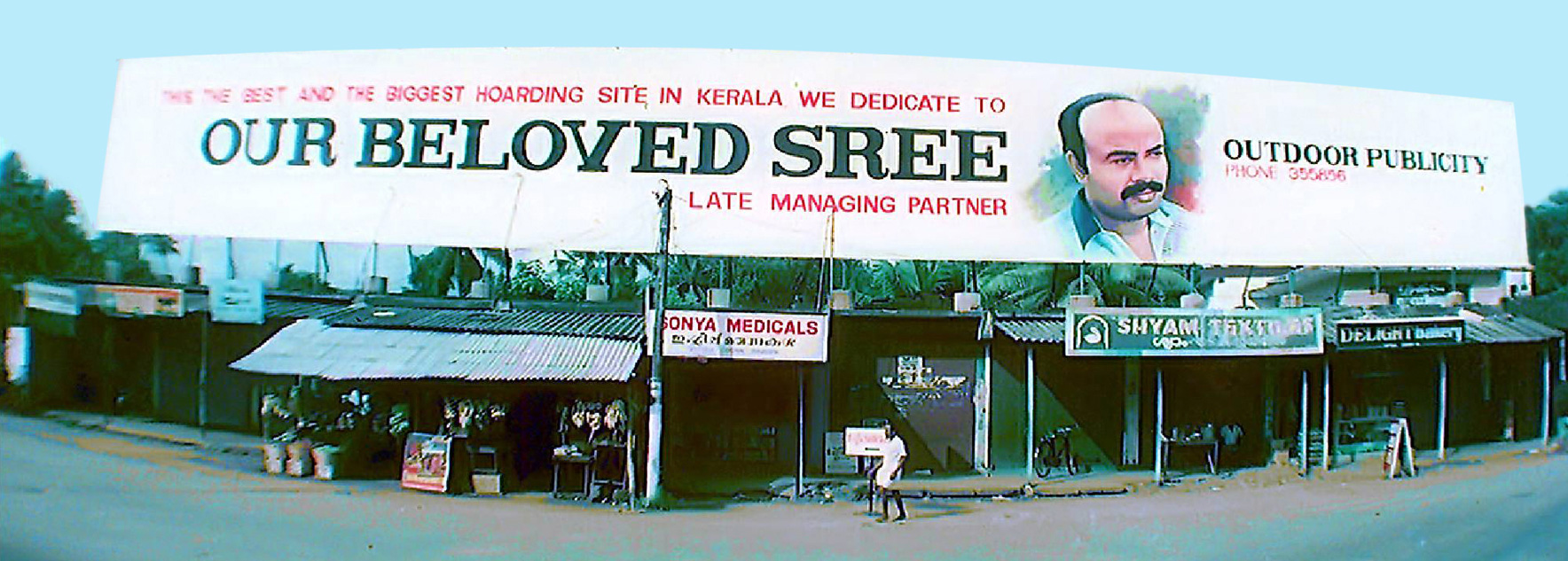 This is the story of the beginning of hoarding advertising in Kerala. Later outdoor has put up the biggest hoarding in Kerala, at Vyttila junction of size 120’ x 20’. The heading picture of this is the obituary notice of the then MG. Partner Mr. Sreekumar. As was the first to start and had instruction by Toshiba Anand to put up hoardings all over Kerala, outdoor had erected hoardings from Kasaragod to Neyyatinkara. Today if you look at the outdoor agencies with hoardings in Kerala you will see that they are all localized agencies having hoardings only at their city and town the only outdoor agency that has got hoardings all over Kerala from Kasargode to Neyyatinkara – Outdoor Publicity and Outdoor Publicity alone.